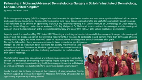 Persatuan Dermatologi Malaysia Newsletter 01/2023: Fellowship in Mohs and Advanced Dermatological Surgery in St John’s Institute of Dermatology, London, United Kingdom